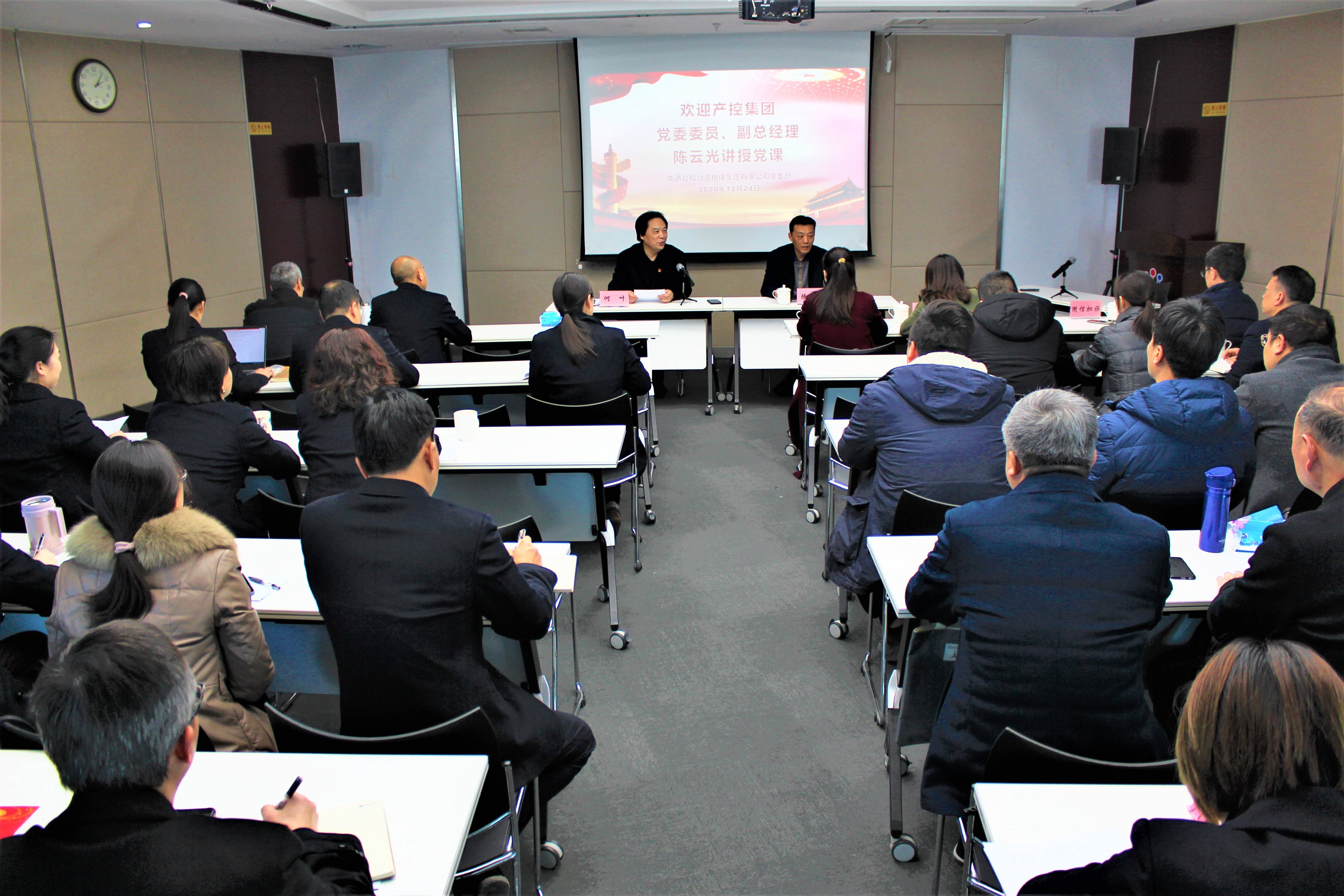 12月24日下午,根據(jù)精準(zhǔn)警示教育活動計劃安排,南通眾和融資擔(dān)保集團(tuán)有限公司黨支部開展精準(zhǔn)警示教育專題黨課,邀請產(chǎn)控集團(tuán)黨委委員、副總經(jīng)理陳云光同志為支部全體黨員、入黨積極分子、中層以上干部及子公司領(lǐng)導(dǎo)班子成員講授黨課,產(chǎn)控集團(tuán)財務(wù)部及國信擔(dān)保黨支部全體黨員干部一起聆聽了黨課。