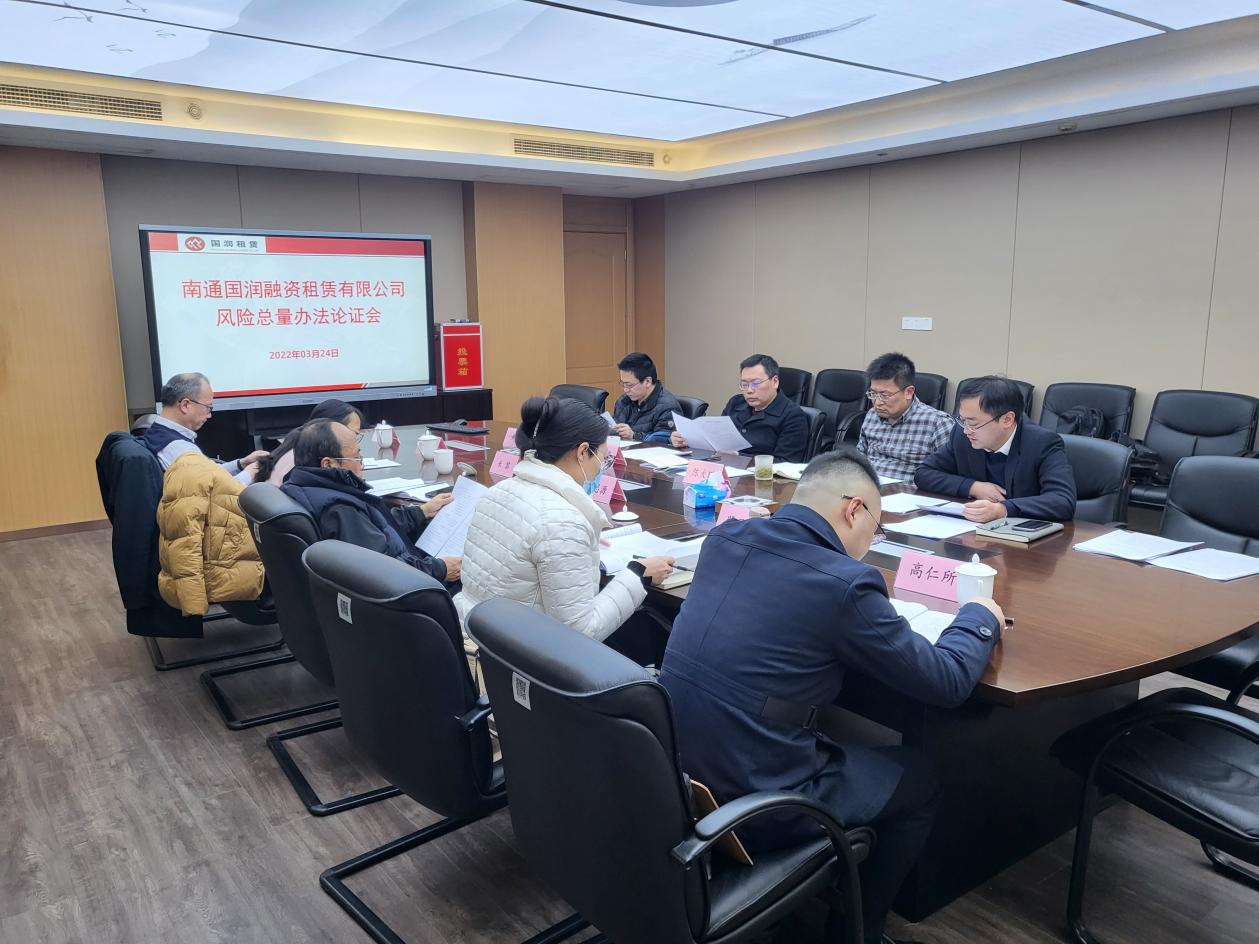 為推動公司高質量發(fā)展,加快轉型升級、控制經營風險,國潤租賃邀請市金融局、國資委和銀行、法律等方面專家,共同對《國潤租賃風險總量管理辦法》進行研究論證。