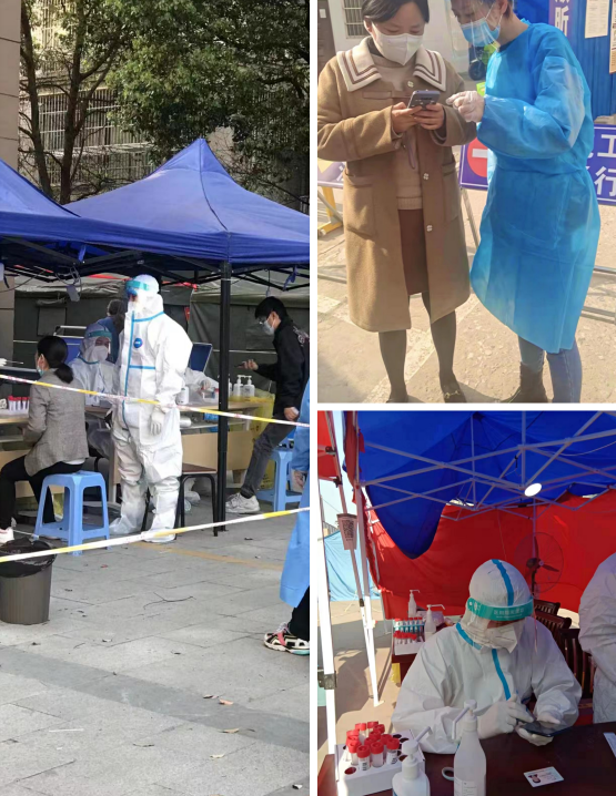 “您好,請配合我們測量體溫”、“請大家?guī)Ш每谡帧薄ⅰ罢執(zhí)崆皽?zhǔn)備好身份證”······他們在現(xiàn)場協(xié)助查驗雙碼、測量體溫、維護現(xiàn)場秩序、對老人進行掃碼幫助等,大慶社區(qū)、大南社區(qū)、濠東社區(qū)等均可見揚子碳素志愿者們忙碌的身影。
