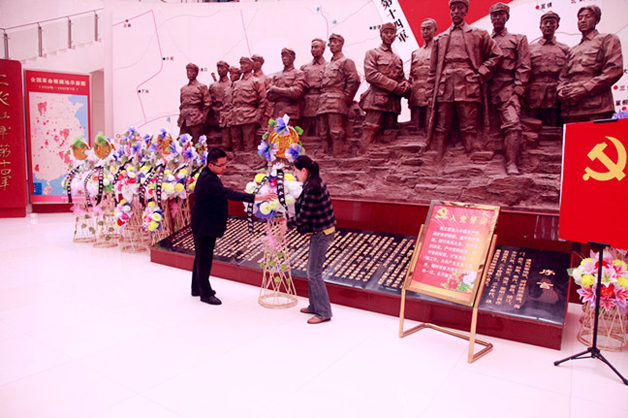 黨員代表向革命先烈群體浮雕敬獻花籃后,全體黨員面對黨旗重溫了入黨誓詞。大家紛紛表示,要堅持發(fā)揚革命傳統(tǒng),繼承、弘揚好革命傳統(tǒng)精神,進一步加強黨性修養(yǎng),進一步密切與人民群眾的血肉聯(lián)系,進一步改進工作作風。